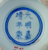 嘉靖、隆庆、万历时期青花瓷使用回青料绘画,浓艳泛紫是回青料的基调,呈色如宝石蓝。