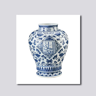 此罐有一种特殊的装饰,即开光中的阿拉伯文。瓷器的烧造有时跟皇帝的喜好有关系,正德皇帝崇信伊斯兰教,因而这个时期的瓷器上很多装饰有阿拉伯文。