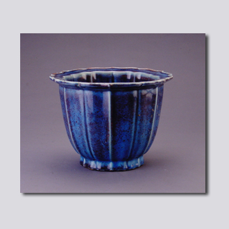 此盆是清御窑厂仿宋代钧窑花盆而烧造。督陶官唐英在任期间,于雍正七年曾派其幕友吴尧圃到河南均州钧窑瓷器产地调查钧窑器釉料配制法,故所仿钧窑器可与宋钧媲美。