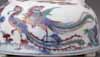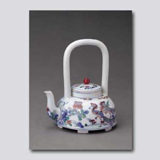 壶体造型别致。腹部绘凤凰、仙鹤、鸳鸯、鹡鸰、黄莺五种鸟类图案,寓意五种社会关系:君臣、父子、夫妇、长幼、朋友五伦,表示父子有亲、君臣有义、夫妇有别、长幼有序、朋友有常。
