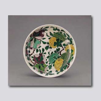 素三彩是用黄、绿、紫、白等彩料在瓷器上绘画图案,因为诸彩中没有红色,所以称“素三彩”。