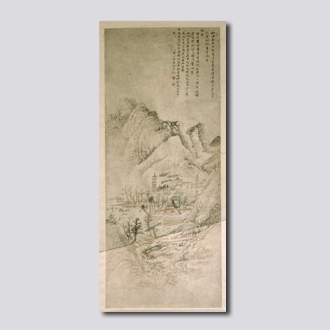 邹一桂(1686-1772),字原褒,号小山,晚号二知老人,江苏无锡人。擅画山水、花卉。设色明净秀雅,风格隽冷。此图画北京房山云居寺风光,据自题中记,画家曾扈从圣驾至此,奉旨作画,感北方烟峦与南方绝异,特意留此副本,作为记录。