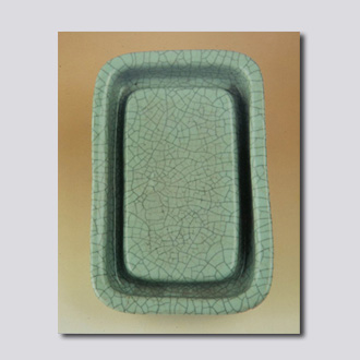瓷质。长方形。瓷砚的制作最早始于晋、南北朝时期。此砚为豆青色,砚底不施釉,有烧制时留下的四个支钉。瓷砚一般为书案陈设品。