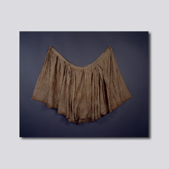 现藏首都博物馆。驼色缠枝莲缎地。此裙由两大片组成,每片221厘米,用裙料三幅半,幅宽60厘米。裙腰用绸单上,两侧各一袢,腰两端各一根丝带,两跨三个对褶。裙襕宽12厘米,妆花祥凤图案。