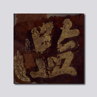 现藏首都博物馆。以褐色缎为地,印金楷书“监”字为主体图案,字体刚劲,为明初书法风格。