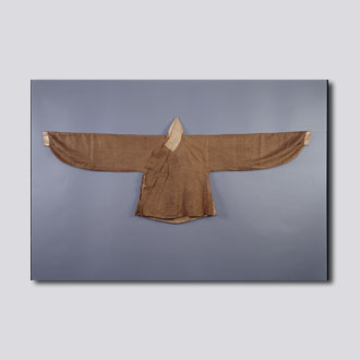 现藏首都博物馆。形制为交领、斜襟、右衽。斜襟处有丝带两对。琵琶袖,袖直径为29厘米,袖口用4厘米宽的五枚缎紧束,袖口下侧打褶两对。