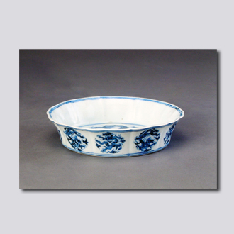 首都博物馆藏。撇口,浅腹,平底,圈足。内底绘云龙纹,外壁饰团龙纹。造型秀巧,纹饰精致。胎质洁白,釉面晶莹。