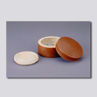 首都博物馆藏。器身自上而下由盖、砚池、水盂组成。圆形,矮圈足。器内饰青白釉,器外施酱色釉,釉色纯净。是元代瓷砚中不可多得的佳品。