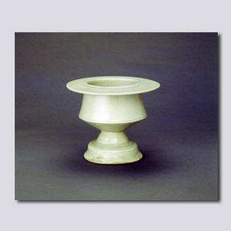 首都博物馆藏。宽平沿,敛口,折腰,覆盘式足,足内无釉。通体施白釉,内心无釉。釉面莹亮,白中泛青,胎体洁白致密。