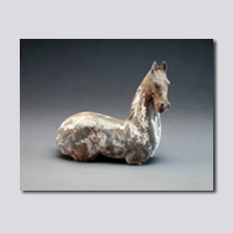 首都博物馆藏。泥质红陶,器表有白陶衣,陶衣上有红色彩绘。马双目突出,鼻翼鼓张,双唇微合,双耳竖立。颈部剪鬃,身躯壮硕。四腿上部平齐,各有一小孔以便安装马腿,四腿已失。