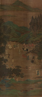 观射图卷 清 佚名 绢本设色 纵143.2厘米,横62.7厘米 外围 纵230厘米,横93厘米 首都博物馆藏 |