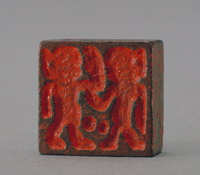 蹴鞠图案铜印 西汉 印面边长1.6×1.6厘米,印体厚0.5厘米 故宫博物院藏