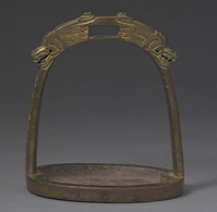 铜马蹬 清 高14.5厘米,最宽处12.1厘米 首都博物馆藏