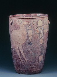 既加大了容量,又使其具有稳定性。新石器时代以鸟类造型的陶器目前仅见此一件,是原始制陶工艺的杰作。用鹰作器型可能与人们对鹰的崇拜有关,这种动物矫健、凶猛,使当时的人们对其产生敬畏、崇拜。