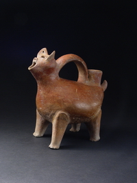 兽作挺颈昂首,以张圆的口部作壶嘴,四肢为器足,短尾上翘