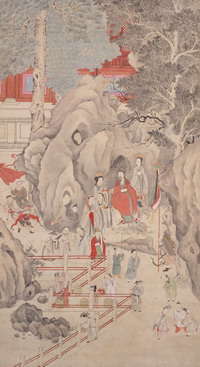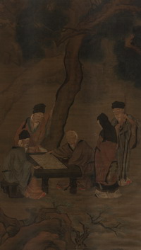 五老观棋图轴 明 绢本设色 纵141.8厘米,横81厘米 外围 纵230厘米,横86厘米 首都博物馆藏