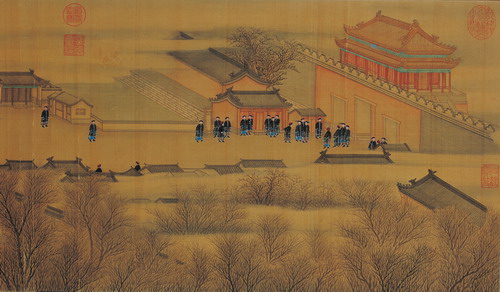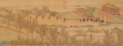 冰上体育运动,是我国古代体育的重要内容之一。特别到了清代,冰上活动已成为我国北方冬季体育活动的重要形式。清代将冰上运动称为冰嬉,视为“国俗”。此幅作品描绘的是“太液池冬月表演冰嬉”盛况。 按照清朝典制,选手约一千四百人左右。比赛时,皇帝坐在船形冰床上,由王公贵族文武百官陪同,有万队八旗军旅护卫,亲临现场阅视,其场面威武壮观。赛场上,设有三个饰有彩旗的旌门,门上方正中悬一彩毬,作滑射之用。参赛选手排列整齐,旗手射手相间,待号令一发,遂之选手身着缇衣,足穿薦铁如刀的革履,沿着画好的弯曲冰道迅速滑去。彩旗随风飘扬,弓箭射手奔向旌门,有的身躯微弯,扬弓搭箭准备射箭;有的滑过旌门,回首仰射;有的箭已射中,神态愉快……滑射赛后,分为三个等次,三箭皆中者为上等,三箭二中者为乙等,三箭一中者为三等,分别赏赐银两,未入等次者亦有赏赐。 |