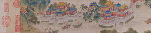 冰嬉图卷 清 金昆、程志道、福隆安绘 绢本 纵35.2厘米,横581厘米 外围纵36厘米,横746厘米 故宫博物院藏