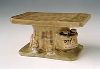 陶瓷枕出现于唐,形体较小,宋以后形体逐渐变大。瓷枕具有纳凉之功效,是消暑的理想寝具,“清凉沁肤、爽身安神”。狮是具有镇邪驱魔的瑞兽,这件瓷枕以狮为座,显然是以其辟邪。