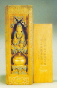黄檀木观音像 清(1644年-1911年) 木 ,1件套含附件4件 高49厘米,宽16厘米, 西城区妙应寺白塔塔藏 |