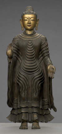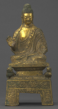 释迦牟尼佛像 北魏(386年-534年) 铜 高33厘米,宽15.5厘米,厚12厘米 延庆区张山营镇黄柏寺村出土 首都博物馆藏