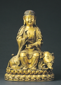 普贤菩萨像 明 嘉靖 (1521年-1566年) 铜 高42.5厘米,宽30厘米,厚21厘米 首都博物馆藏 |