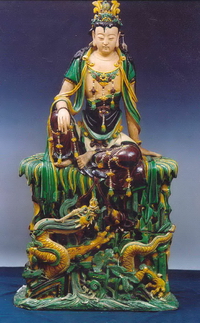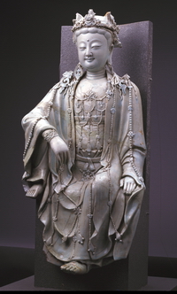 景德镇窑青白釉水月观音菩萨像 元(1279年-1368年) 高65厘米 西城区定阜大街西口出土 首都博物馆藏 |