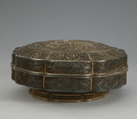 通体用粗细两种银丝累掐焊接而成,盒面捶錾龙纹,工艺繁复,錾刻精细,玲珑剔透,是清代累丝工艺品中的佳作。 |