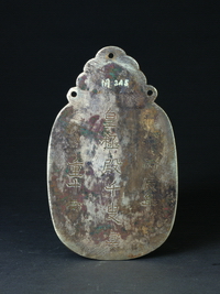银牌是嘉庆元年所制。顶端为如意朵云纹,一面铭文是“太上皇帝御赐养老”;另一面铭文是“丙辰年皇极殿千叟宴重十两”。 |