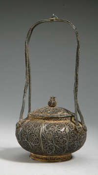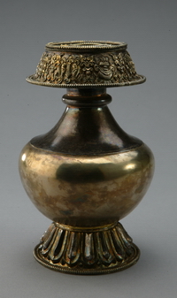 此器采用浇铸、錾刻、焊接等技法制成,造型优美,线条流畅,刻画精细,寓意吉祥。 |