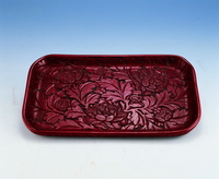 木胎,满饰牡丹花纹,花大叶肥,刀法圆熟,藏锋不露,质朴有力,为典型的明代漆器艺术风格。 |