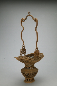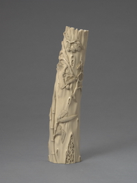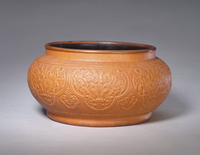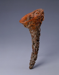 此器采用镂雕和浮雕技法,巧妙应用了竹根与竹茎色泽肌理的细微差异,器型优美,使人耳目一新。 |