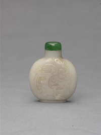 此器造型仿青铜器,高大规整,鼎腹与盖面采用贴黄浅刻、镂贴工艺,饰夔龙纹,有微凸的浮雕感。纹饰严谨规矩,朴素清雅,色泽宜人,为乾隆时期仿古精品。 |