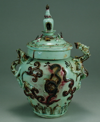 护佛四灵——青花釉里红堆贴四灵塔盖罐