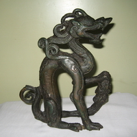 年)重新审定皇帝所乘坐的车,规定将本朝以前所用之金辂(皇帝乘坐的大型豪华车辆)轼上坐龙改为凤,表明铜坐龙实物曾用于皇室御用专车座前扶手的横木上。又据记载,大辇顶轮上有银莲花、坐龙。可见,此类铜坐龙还曾被用在马车的顶轮上。可以认定,铜坐龙应该为金代皇室御用马车上的装饰物。它集龙、麒麟、狮、犬形象和特点于一身,设计构想及雕塑水平高超。现在,其出土之地黑龙江阿城市以之作为城市市标。 |
