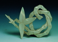 玉佩透雕盘卷在一起的竹枝,于一节间雕出三片竹叶,以单阴刻线示叶脉,双阴刻线示竹节,形态逼真,通体镂空,可系佩。竹子生长在南方,在北方金代玉作中极罕见,这是迄今所知最早以竹为题材的金代出土玉饰。