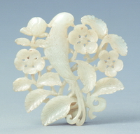 青白玉折枝花卉纹佩 金(1115年-1234年) 长9厘米,宽7.2厘米 房山区长沟峪金代石椁墓出土 首都博物馆藏