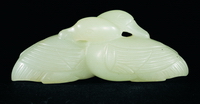 青玉荷叶双龟佩 金(1115年-1234年) 一对2件,长10厘米,高7.5厘米 丰台区王佐乡金乌古伦窝伦墓出土 首都博物馆