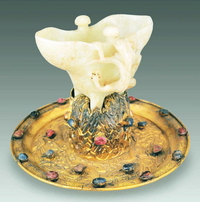 金托玉爵 明(1368年-1644年) 一套2件,直径19.7厘米,通高14.5厘米,爵高11.5厘米 昌平区明十三陵定陵地宫出土 昌平区明定陵博物馆藏