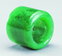 扳指由古代的鞢演变而来,到清代已演化为纯粹的装饰品。此扳指通体光素,琢磨细腻,绿色鲜亮浓艳,显得极为高贵精美。 |