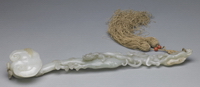 青玉凸雕蟠螭灵芝式如意 清(1644年-1911年) 长39.2厘米 故宫博物院藏