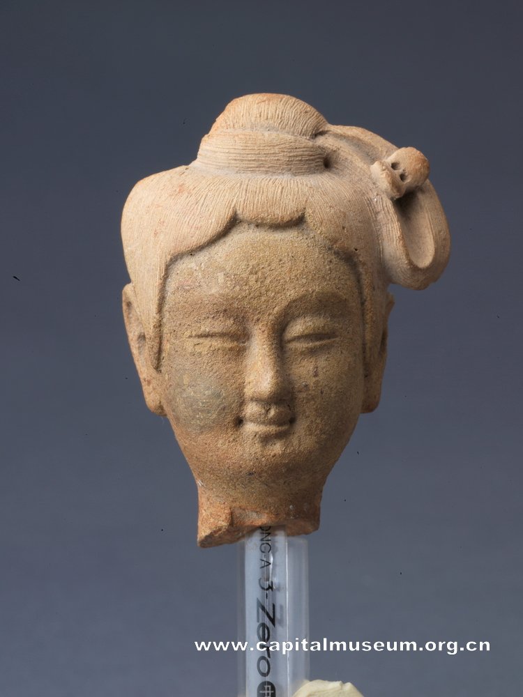 陶梳髻头像 北魏 通高6.3厘米 河南省洛阳市永宁寺塔遗址出土 |