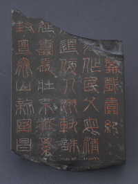汉代 残长13.8、宽9.4、厚2.7厘米 陕西省西安市汉长安城桂宫四号建筑遗址出土 |