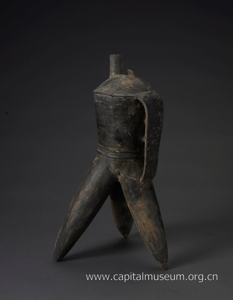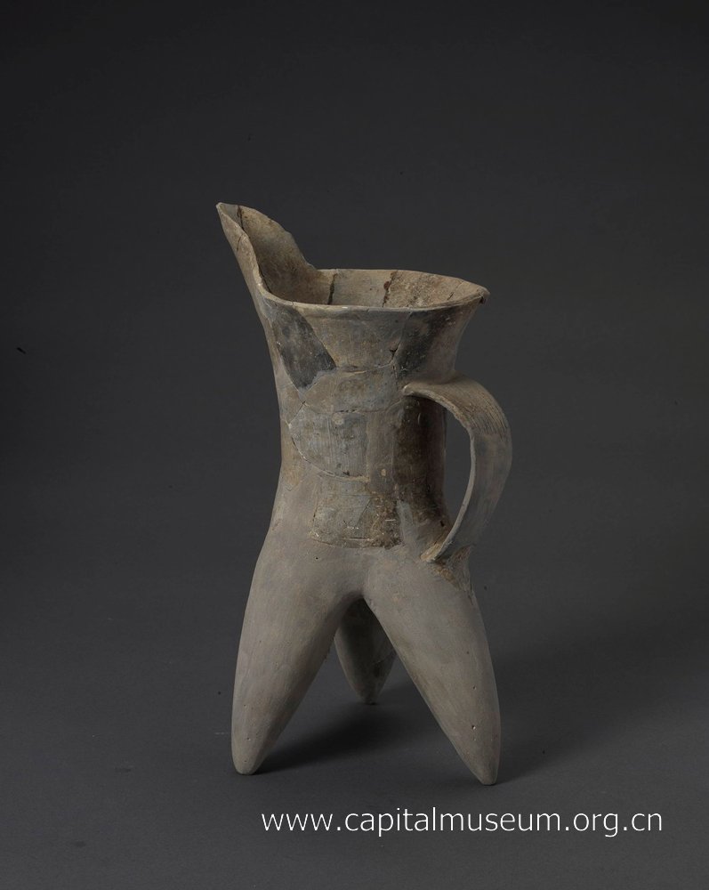 盉的特点是有管状流。这件陶盉的造型源自陶鬶,惟将流口变为管状,遂从鬶变为盉。