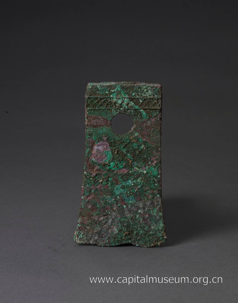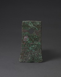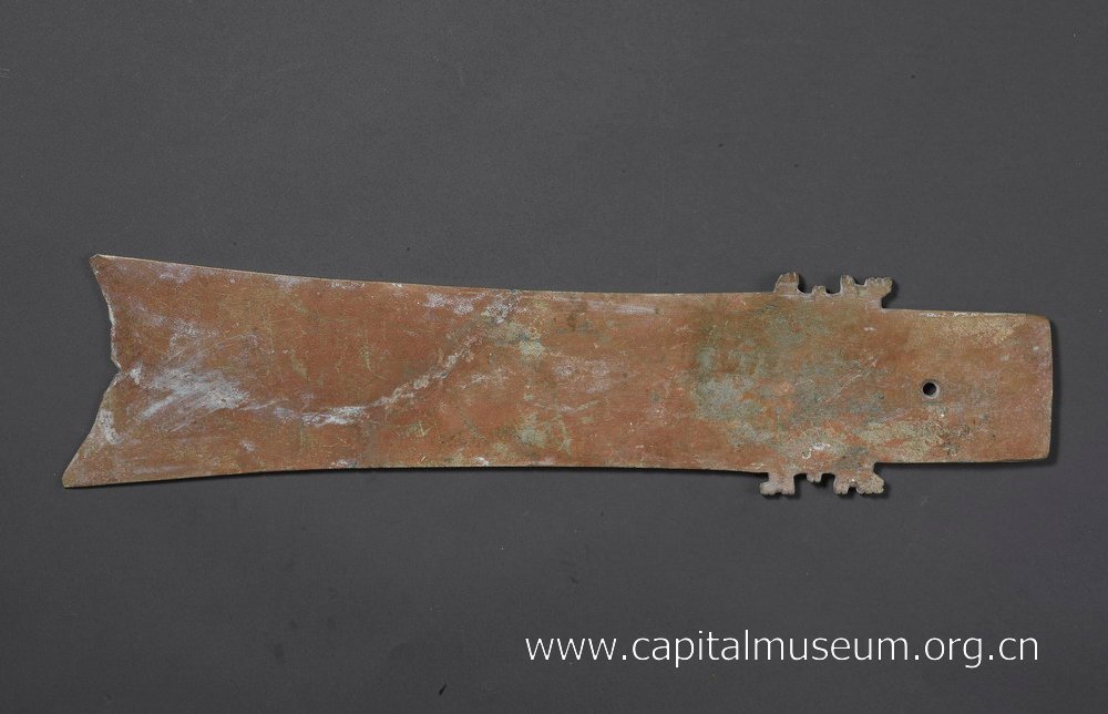 二里头遗址发现的这件青铜钺,是迄今所知中国最早的青铜钺。从铜钺的材质成分及刃部较钝等特征分析,应非实用兵器而属于礼仪用器。这件铜钺与二里头遗址出土的铜戈是迄今所知中国最早的青铜礼兵器。