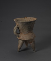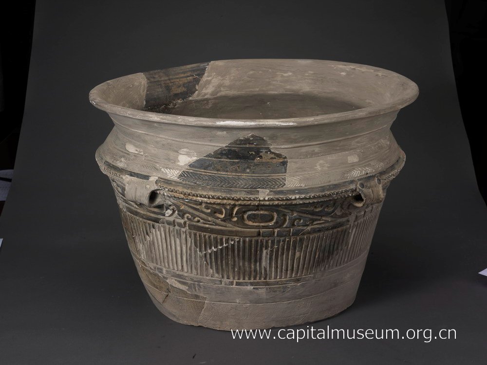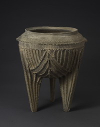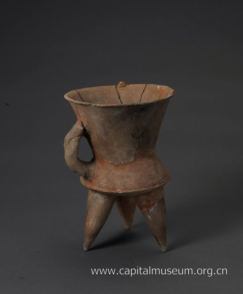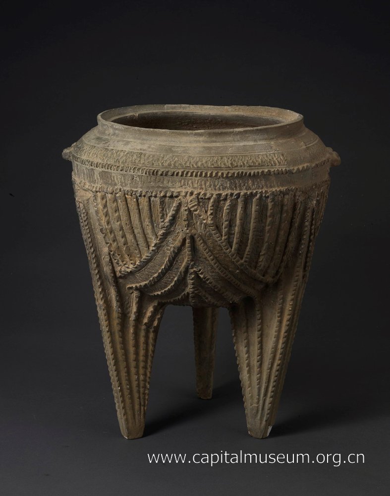 从新石器时代晚期开始,精美而无实用功能的一部分陶器也成为标志等级地位的礼器,广泛见于部族上层的墓葬中。二里头文化的贵族墓葬也大量随葬陶礼器,其地位低于铜礼器,在高级贵族墓中是玉、铜礼器的补充,在中低级贵族墓中则是主要的随葬礼器。二里头文化的陶礼器与同类的青铜礼器往往颇为相似,陶礼器应是铜礼器的模仿来源。例如二里头文化的青铜鼎便与这件有着罐形器身和锥状三足的陶鼎非常相似,青铜鼎上的菱形纹也是来自陶鼎上的几何形刻划纹、堆塑纹等纹饰。