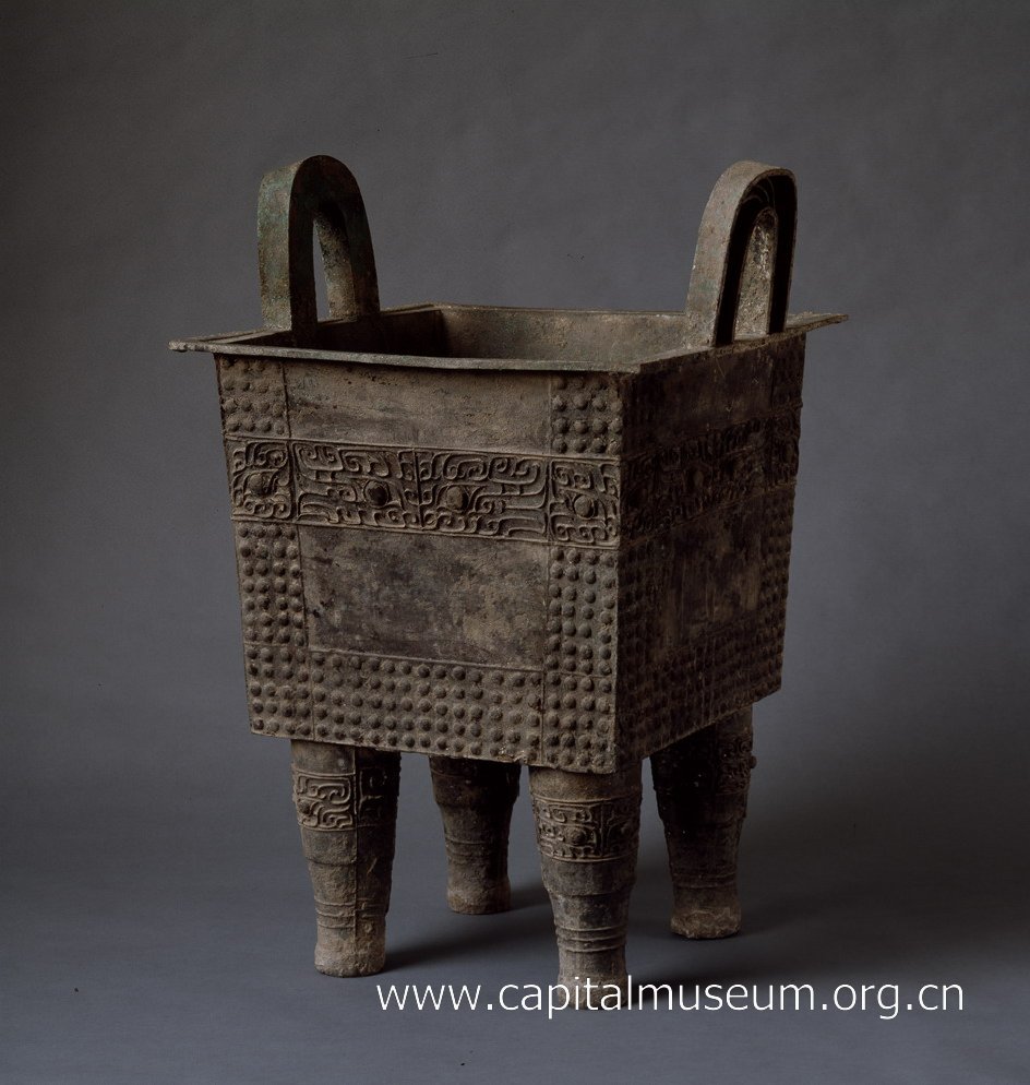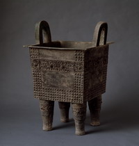 方鼎的造型始见于二里头遗址出土的陶方鼎,一改史前陶鼎均为圆形、三足的传统,表现了二里头文化新的精神追求。当时的制陶技术并不便于制造方形器皿,因此推测二里头文化的陶方鼎应是模仿青铜方鼎,只是目前还没有发现二里头文化的铜方鼎。最早的青铜方鼎出现于商代早期,郑州张寨南街窖藏坑出土的这件是迄今发现的最大的商代早期铜方鼎。方直严整的造型、粗壮稳固的柱状四足、高大的体量,赋予了方鼎特有的雄壮威严的气势,与方正严整的王都隐隐呼应,释放出强烈的礼制诉求。此器硕大的体型、复杂的结构对青铜冶铸技术有着很高的要求,体现了商代早期的复合范冶铸技术趋于成熟。外壁装饰的兽面纹可溯源至新石器时代晚期,但商代青铜礼器的兽面纹将神秘、狰狞的神性内涵发挥到了极致,充分体现了青铜礼器沟通人神天地的功能。这件青铜方鼎堪称是造型艺术、装饰艺术、礼制内涵三者和谐统一的典范之作。