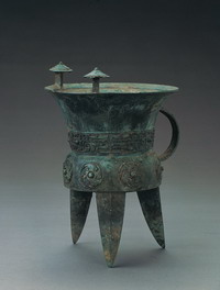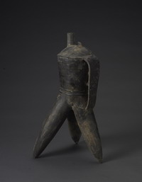 觚是饮酒器,特点是敞口细腰平底,形似喇叭。陶觚、陶爵、陶鬶(盉)是二里头文化墓葬最常见的陶礼器。觚这一器类为商代所吸收,商代青铜觚是与铜爵、铜斝并重的酒器。