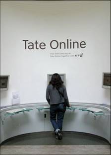 我们的网站很多年前就已经建立,现在它的重要性越来越大了(见图)。泰特网的点击率在不断上升,现在大约是每月100至150万次。泰特的网站不仅仅作为与大家交流的平台,而且还起着发布信息和广告的作用,上面会发布一些关于艺术、展览等的信息和广告。这里展示的是静态图。此外,还会邀请艺术家在网上和网友进行交流,回答大家的问题。