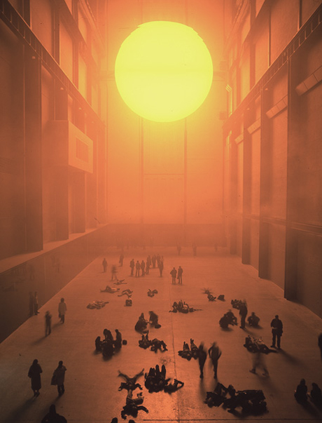 这个作品(见图)的作者艾丽斯是一个冰岛的作曲家,是在泰特现代美术馆的大厅里做的艺术作品,叫“天使行动”。这个作品结合了很多的建筑和光线,然后用水汽充满整个演示大厅。该作品整整展示了六个月左右,很多去参观过的人都感觉它像一个朝圣地。从照片上可以看到,很多人跪在地板上。